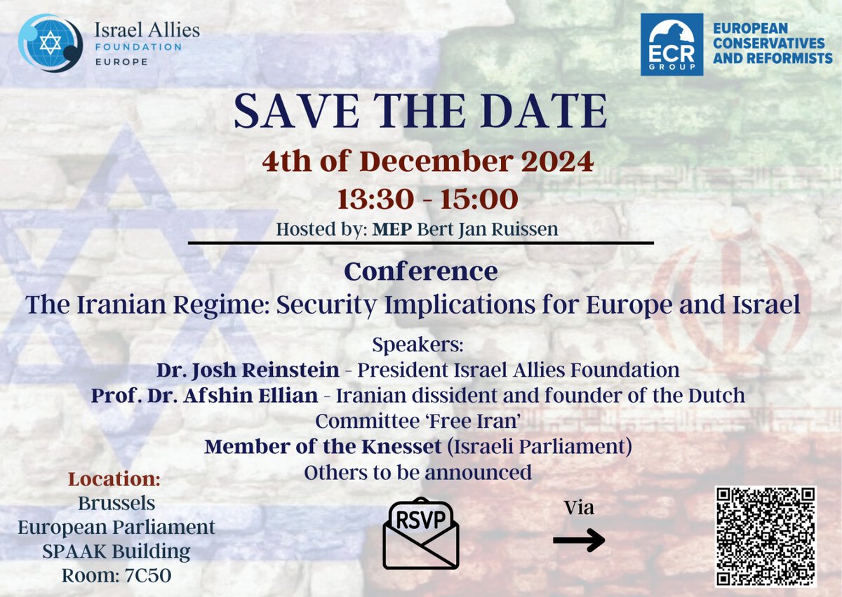 WOENSDAG 4 DECEMBER – Brussel We gaan met een touringcar naar het Europees Parlement om aanwezig te zijn bij een ISRAEL Event, georganiseerd door de SGP en ISRAEL ALLIES FOUNDATION. Na afloop is er een rondleiding en een diner. Deelname op basis van een vrijwillige bijdrage. Uw opgave gaat per wie het eerst zich aanmeldt.